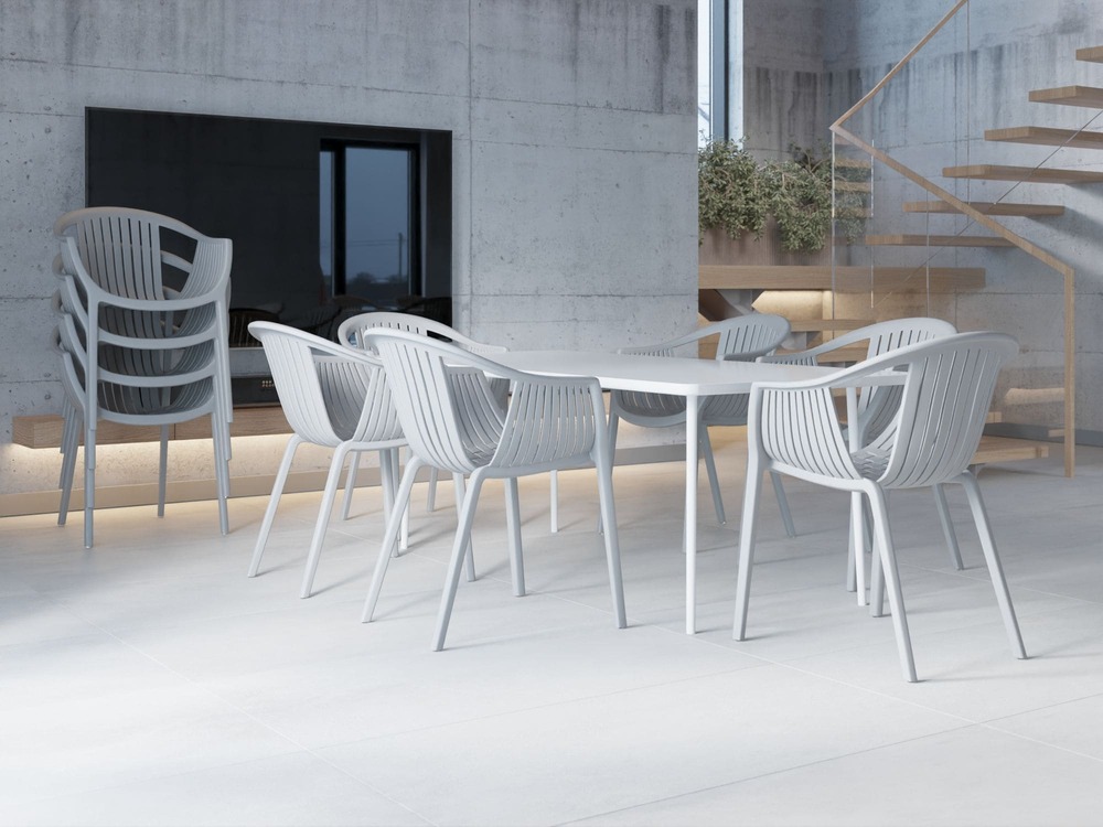 При изготовлении используется высококачественный первичный полипропилен, безопасный для здоровья благодаря отсутствию вредных примесей и неприятного запаха. Материал обладает повышенной устойчивостью к царапинам, бликованию и загрязнению, не оставляет следов рук. Благодаря специальным компонентам в составе полимера кресла защищены от воздействия ультрафиолета, что позволяет свободно эксплуатировать их вне помещений или на открытых террасах без дополнительного ухода.