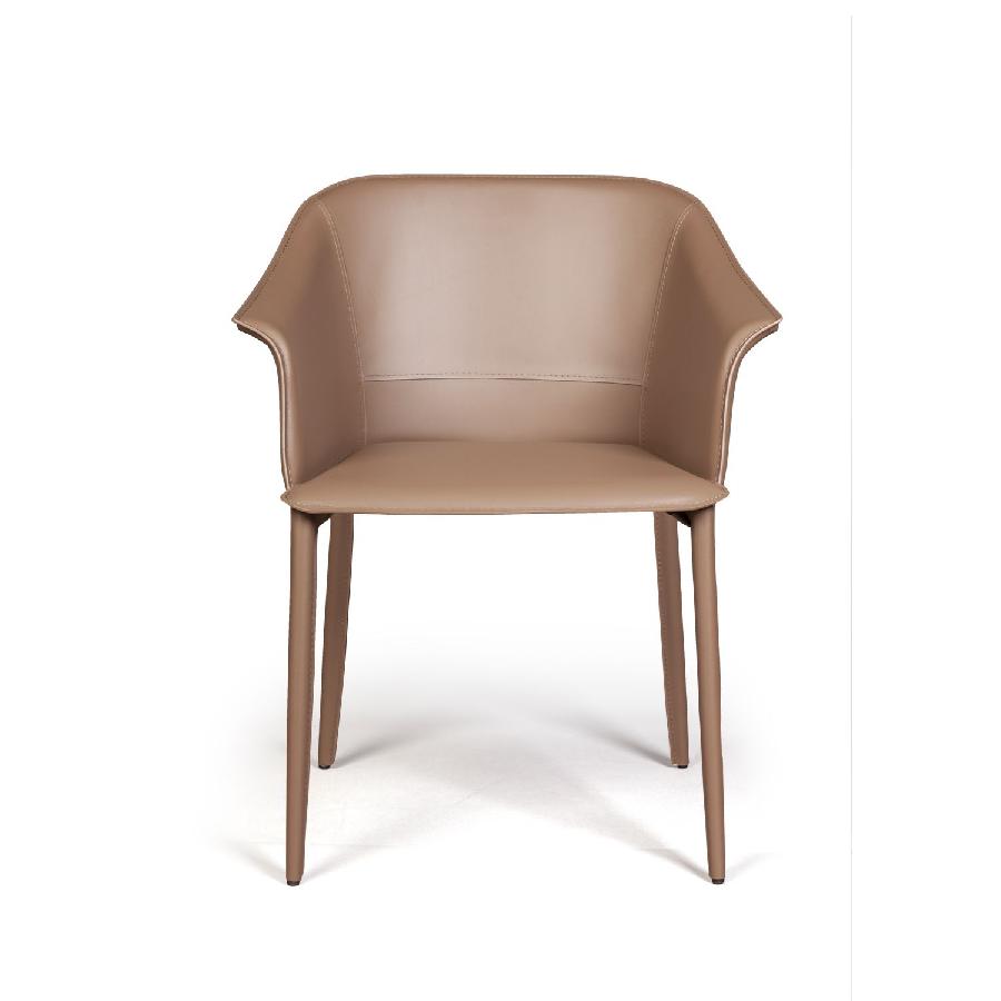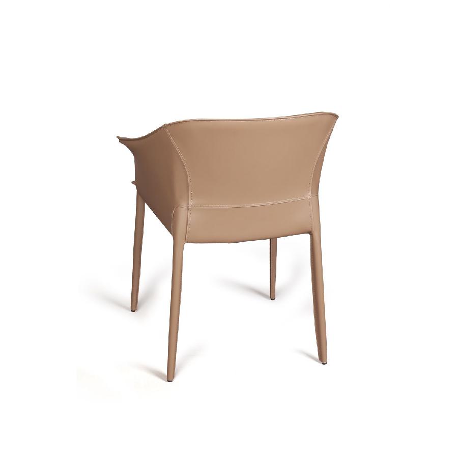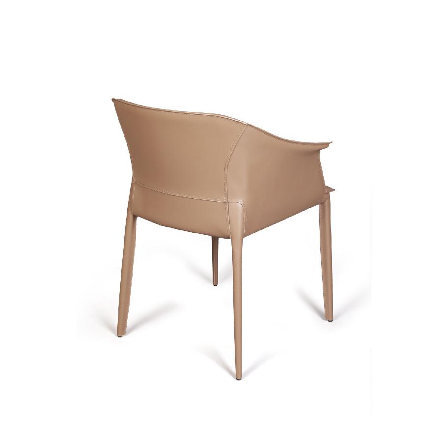 Стул обтянут высококачественной натуральной кожей, которая обеспечивает мягкость, износостойкость и долговечность. Этот материал подчеркивает роскошь изделия и делает его универсальным выбором для любого интерьера.