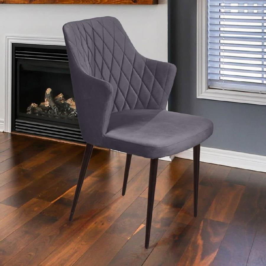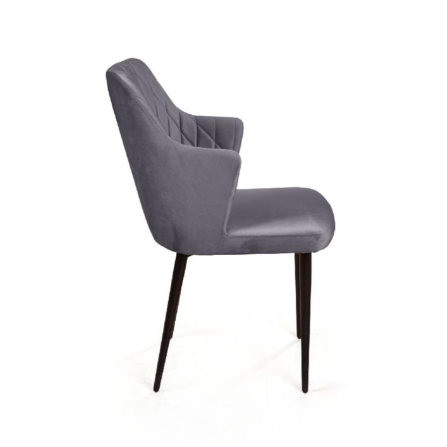 Стул с подлокотниками Hunt ромб, бархат серый 27 / чёрный конус