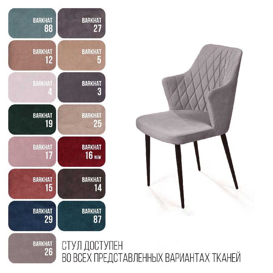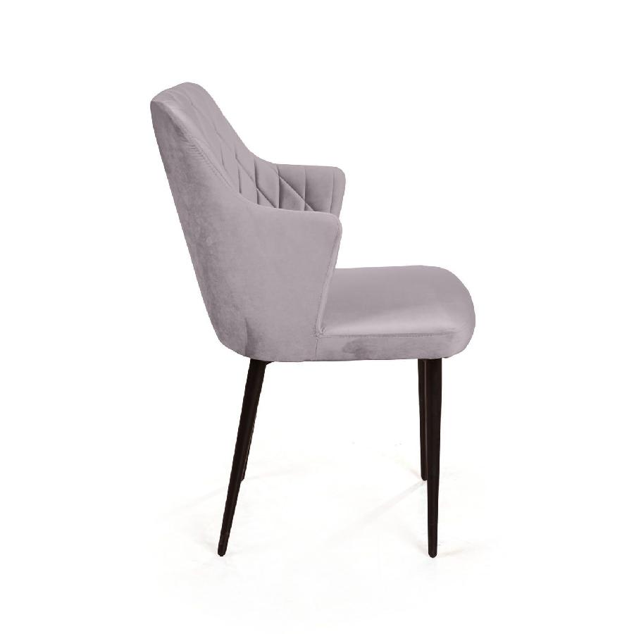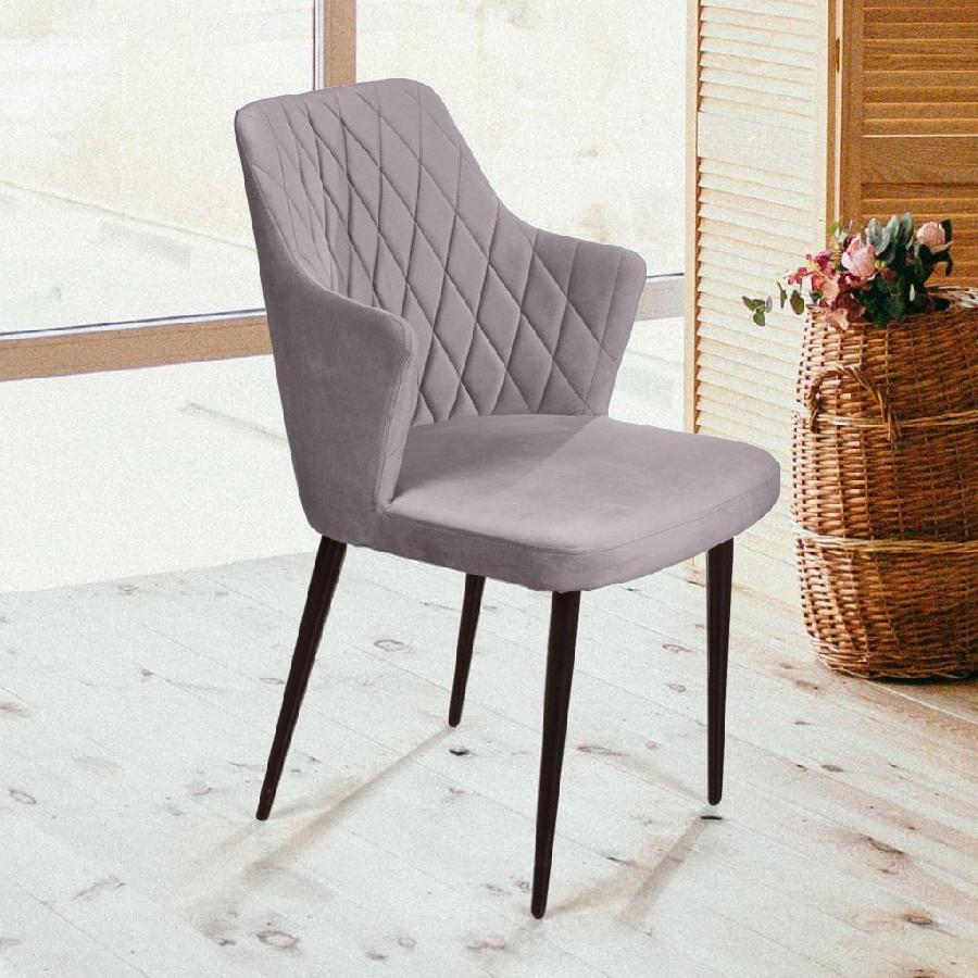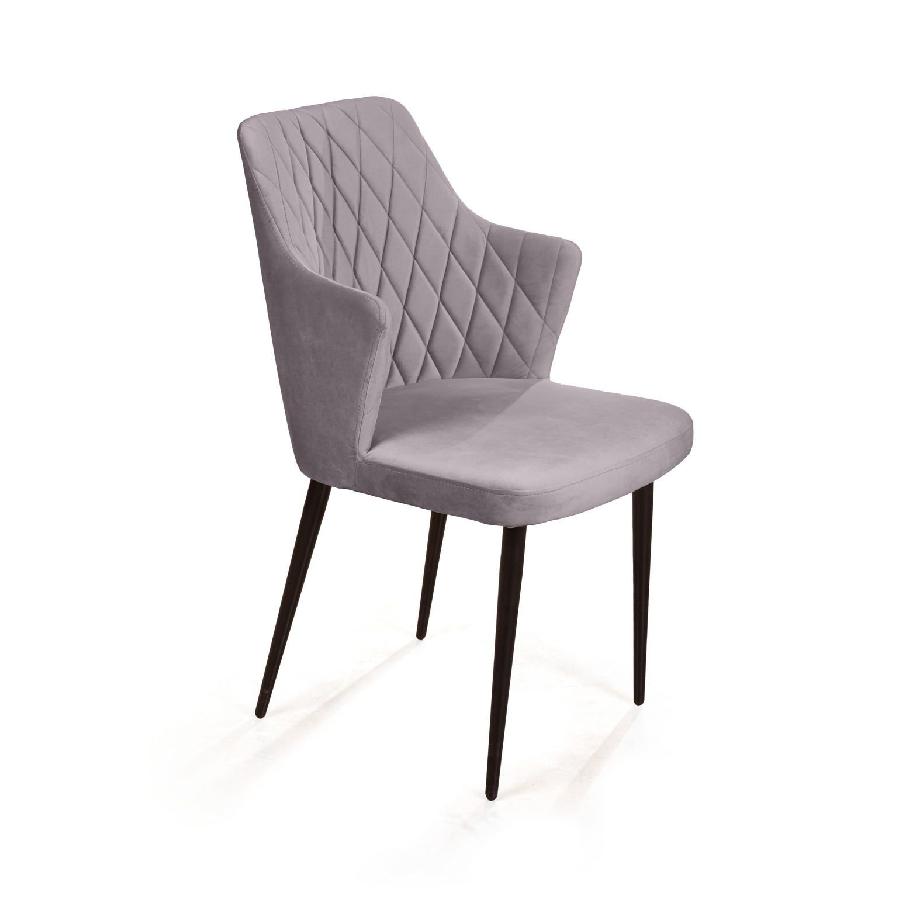 Стул с подлокотниками Hunt ромб, бархат светло-серый 26 / чёрный конус