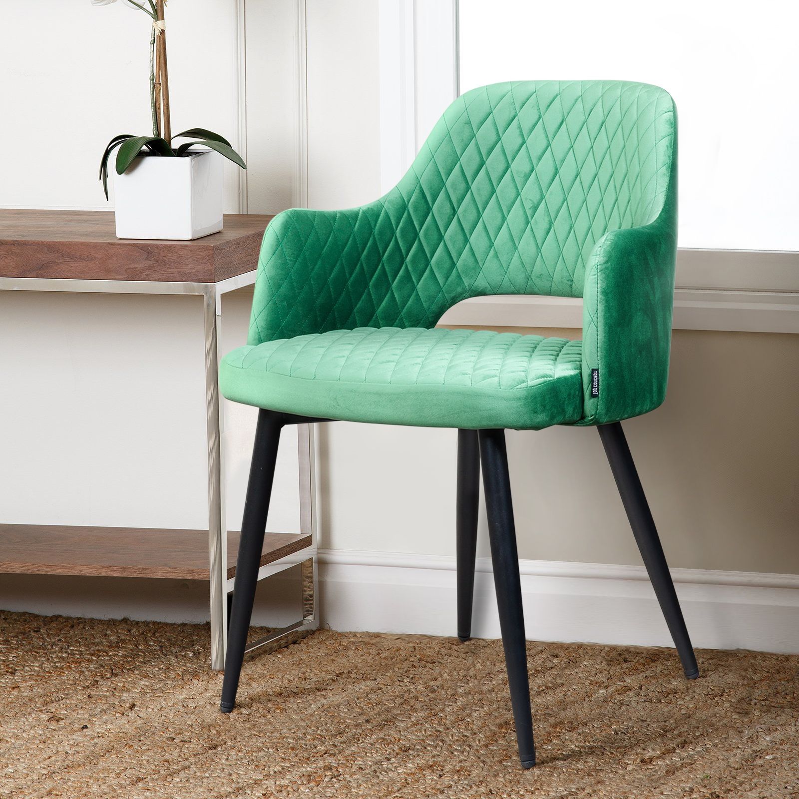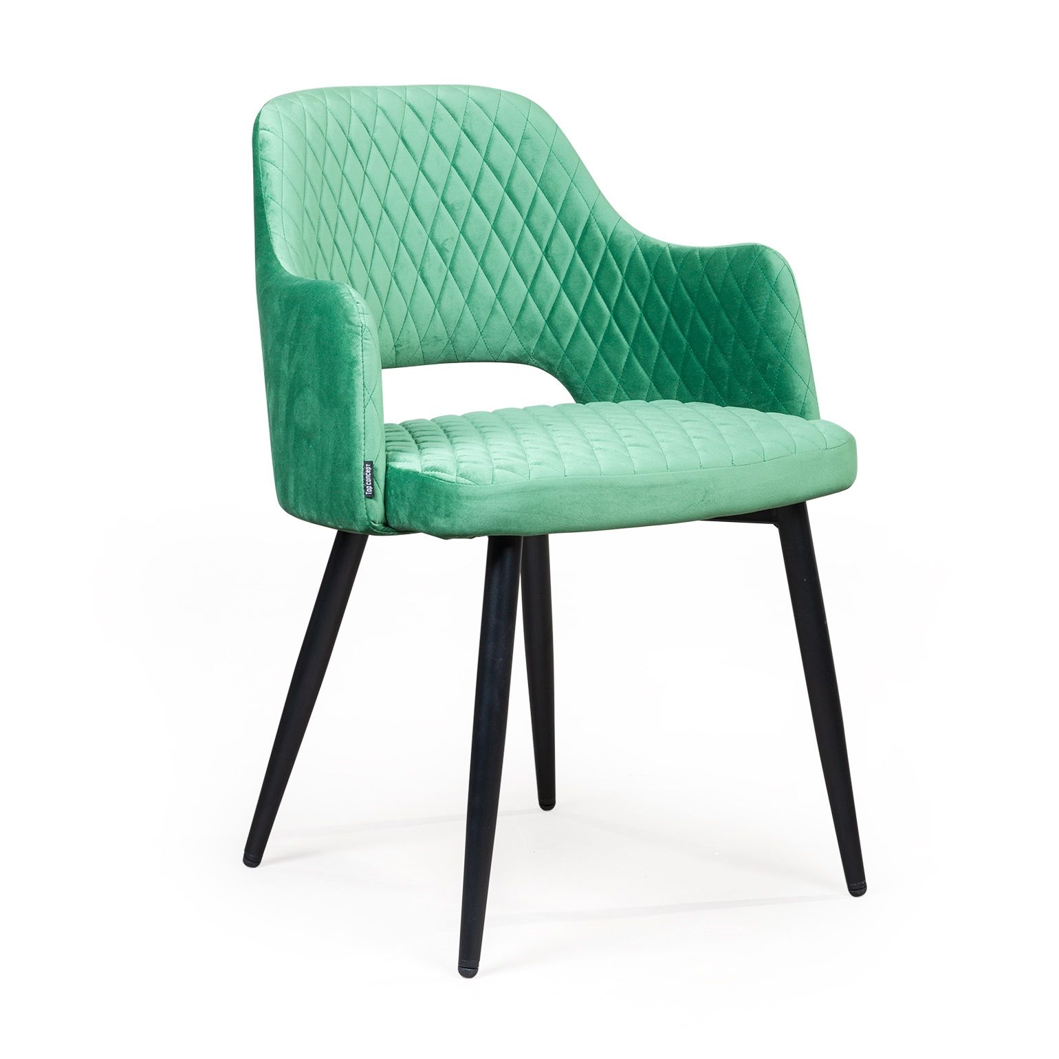 Плавные линии, изящные ножки, просторное сиденье и высокие подлокотники делают модель невероятно удобной для отдыха. Оригинальная прорезь у основания спинки добавляет конструкции легкости и воздушности. Стильная отделка ромбом на спинке и сиденье в сочетании с благородным бархатом создает неповторимые переливы и придает стулу особую утонченность.