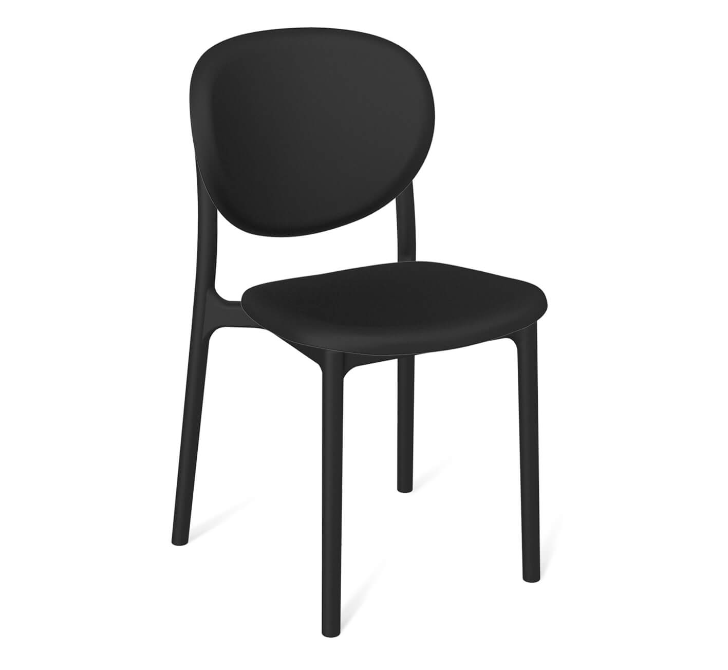 Благодаря округлой форме и объёмному силуэту, стул визуально воспринимается как мягкий и воздушный. Такой дизайн не только делает интерьер более лёгким, но и визуально добавляет уюта