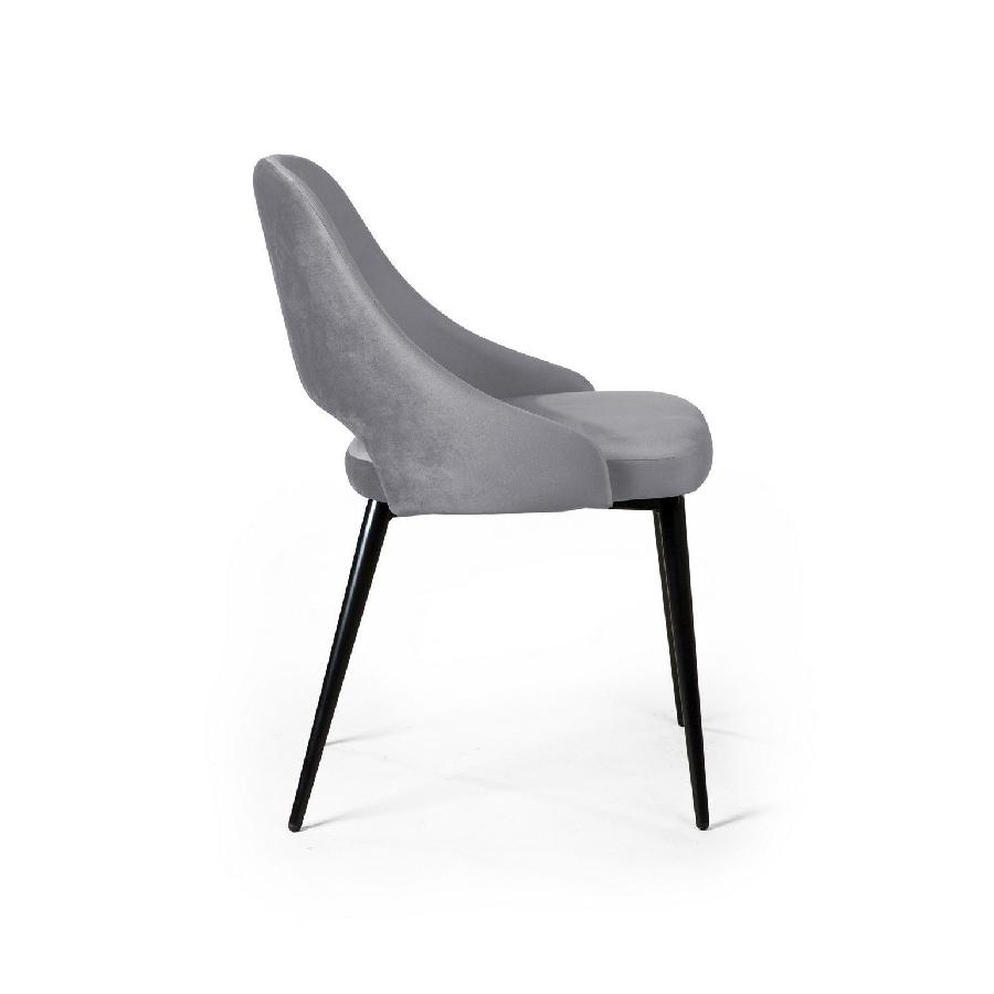 Изюминка стула William – металлические ножки черного матового цвета, излишне скошенные назад, как часть дизайнерской задумки. На ножках предусмотрены специальные пластиковые накладки, которые придают стулу дополнительную устойчивость и защищают пол от царапин.