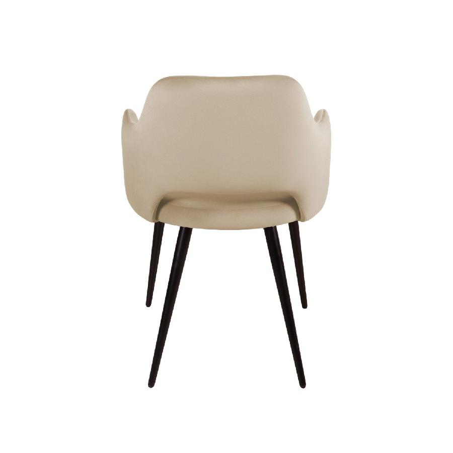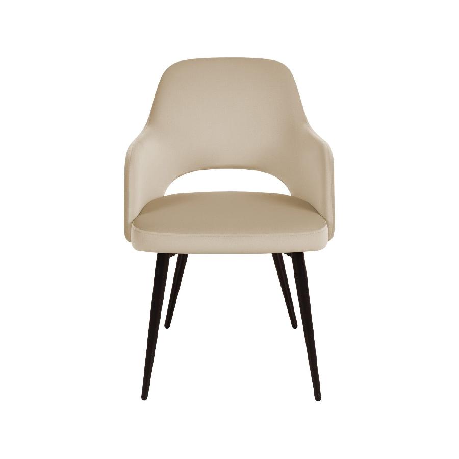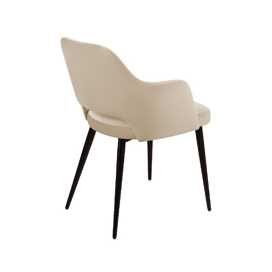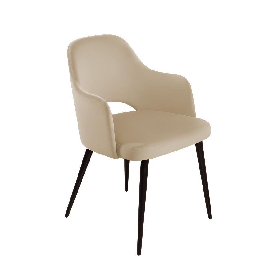 Изюминка стула William – металлические ножки черного матового цвета, излишне скошенные назад, как часть дизайнерской задумки. На ножках предусмотрены специальные пластиковые накладки, которые придают стулу дополнительную устойчивость и защищают пол от царапин.