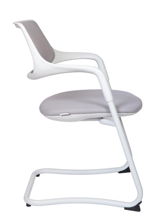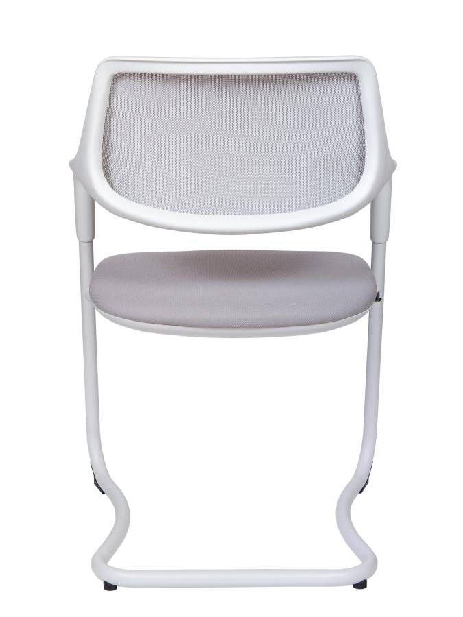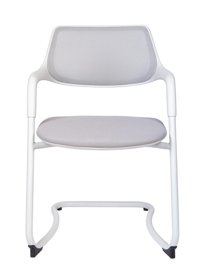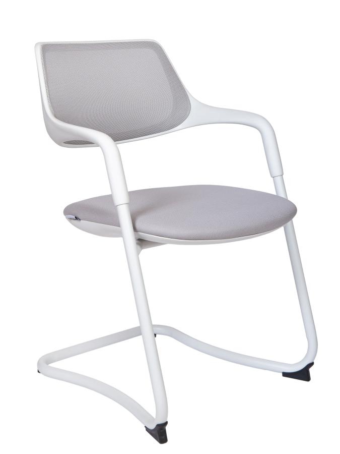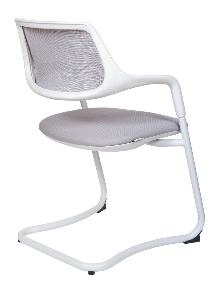 Современный офисный стул для учебных помещений и зон ожиданий. Пластик. Сиденье ткань, Спинка сетка. Цвет пластика белый. Основание металл, белый.