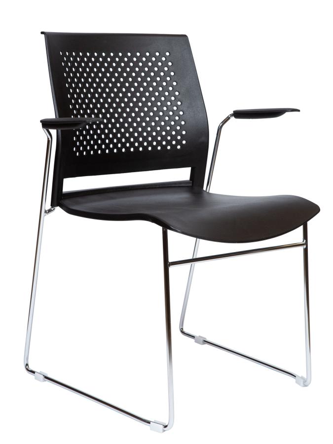это современное решение для учебных помещений и зон ожидания, сочетающее стиль и функциональность. Стул выполнен из прочного черного пластика, который легко очищается и устойчив к износу. Металлическое основание обеспечивает прочность и долговечность конструкции, а пластиковые подлокотники добавляют удобства. Лёгкий и современный дизайн делает этот стул идеальным выбором для динамичных образовательных и офисных пространств.
