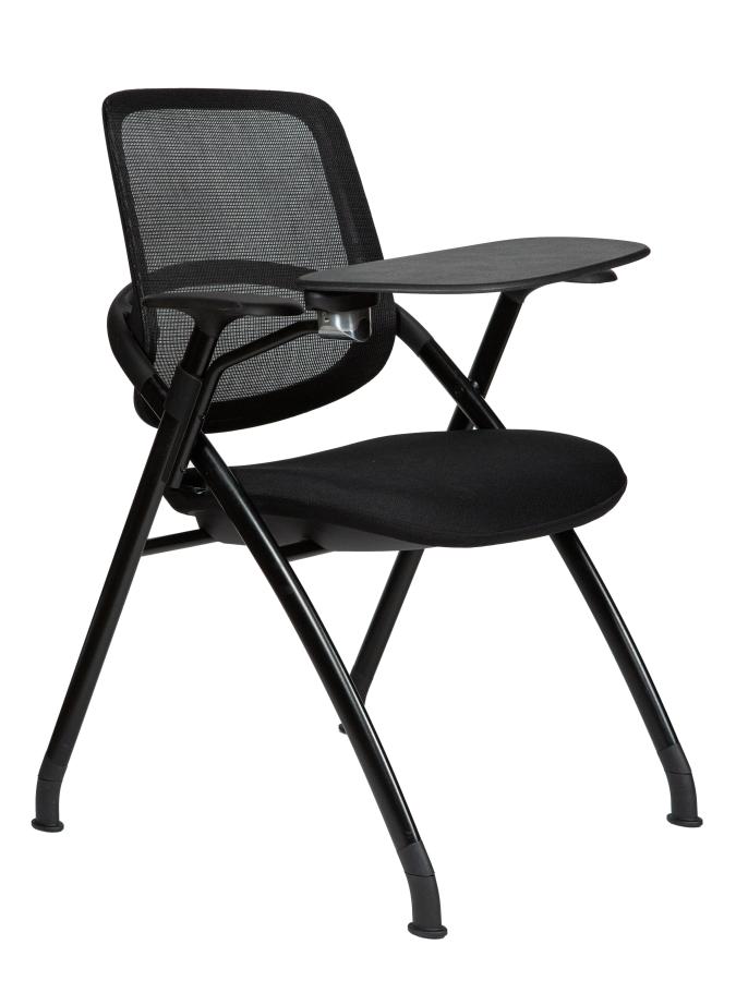 Современный офисный стул для учебных помещений и зон ожиданий. Пластик. Сиденье ткань, Спинка сетка. Цвет пластика черный. Основание металл, черный. Пюпитр.