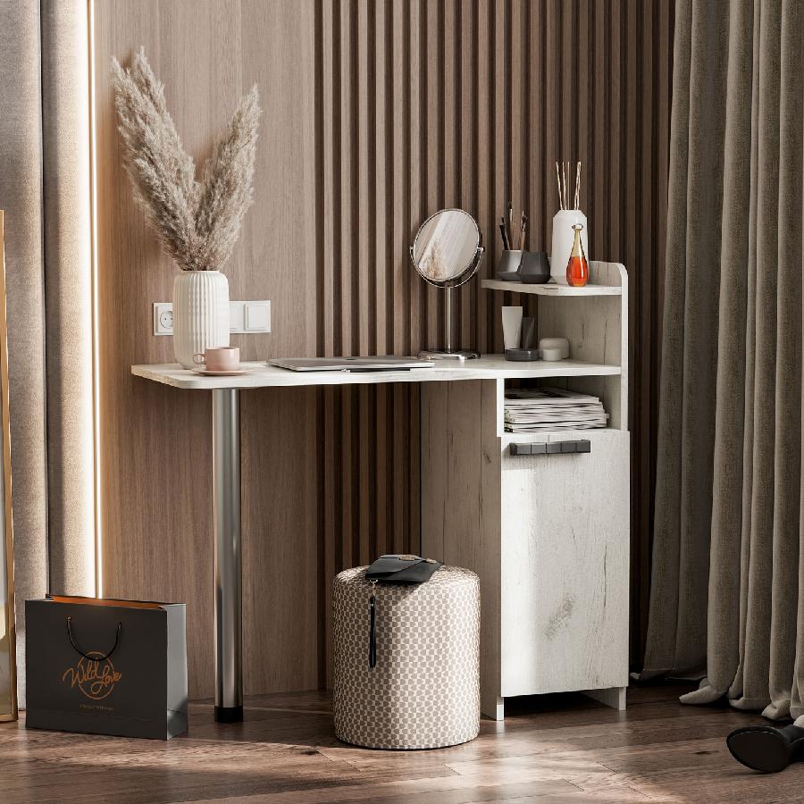 Оснащен тумбой с фасадом и открытой нишей.