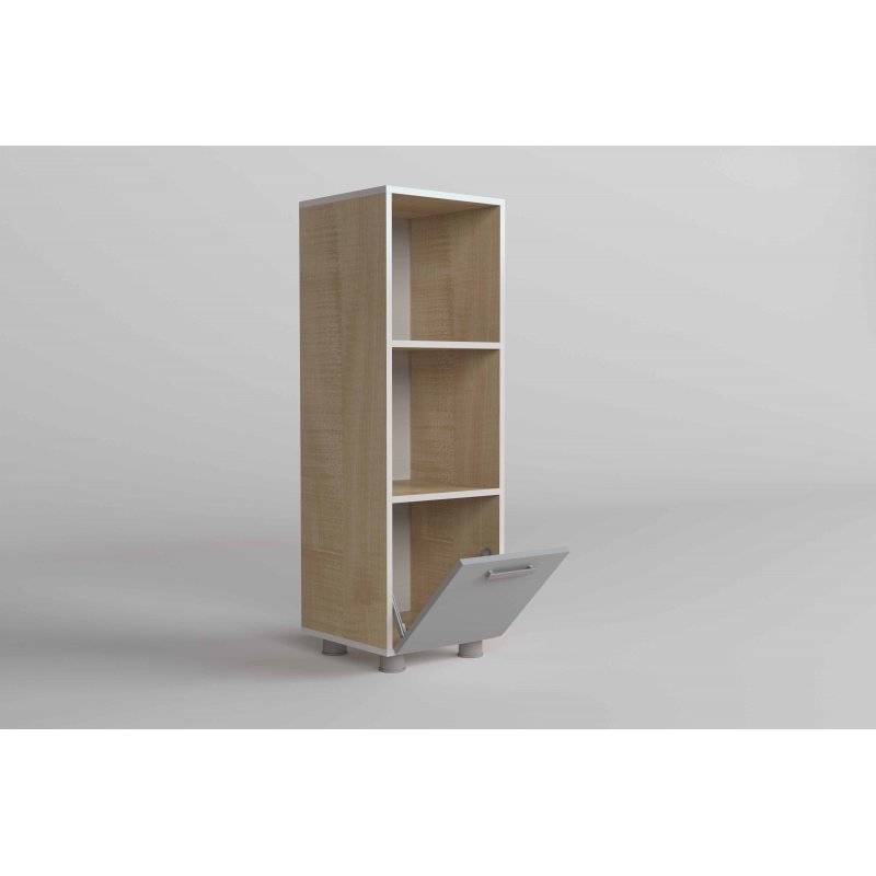 Изделие подойдет для оснащения школьного или офисного кабинета. На полочки можно сложить малогабаритные предметы, книги или элементы декора. Имеется два варианта изделия: с двумя открытыми полочками и одной закрытой, и двумя закрытыми полочками. Нижняя закрытая полочка у обоих вариантов с откидывающимся вниз фасадом на петлях и газлифтами, а верхняя полка у закрытого варианта открывается вбок. Ножки изделия выполняются из износоустойчивого и прочного пластика, благодаря этому они не царапают пол и обеспечивают устойчивость модулю.