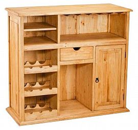 Бар 122 выполнен из массива сосны. Эта комбинированная конструкция оснащена секцией для хранения бутылок, с выдвижным ящиком и kit-баром для подвески рюмок и бокалов. Закрытым отделением и полками - все, что нужно для оборудования прекрасного бара. Модель отлично сочетается с классической мебелью и гармонирует с интерьерами в стиле прованс.