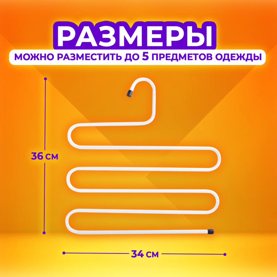 Предлагаем универсальную металлическую вешалку, которая поможет организовать пространство и создаст уют в доме. Вешалки для одежды изготовлены из прочного металла. Многоуровневая вешалка для брюк эстетичной изогнутой формы выдерживает до 6 кг благодаря усиленному металлическому профилю. Она не погнется даже под тяжестью зимних штанов или мокрых полотенец. Пластиковые заглушки на концах не позволят соскальзывать одежде с вешалки, а самому аксессуару с перекладины шкафа. Вешалка компактная и не занимает много места - ее размер 34 на 36 см. При этом на одной такой вешалке можно разместить до 5 предметов одежды. Подойдет для брюк, женских и мужских шарфов, широких декоративных шейных платков, галстуков и других аксессуаров гардероба. Вешалку "Змейка" можно использовать как для взрослой, так и для детской одежды.