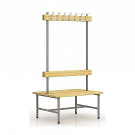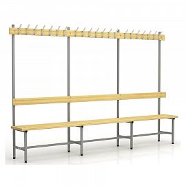 Вешалка двухсторонняя со скамьей для гардероба на 42 крючка. Сборно-разборная конструкция.