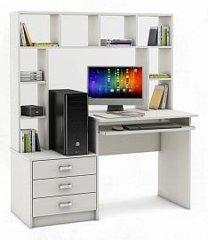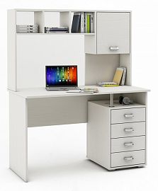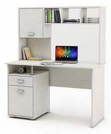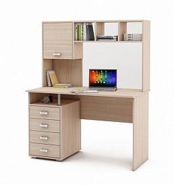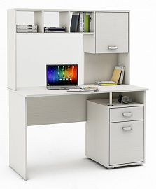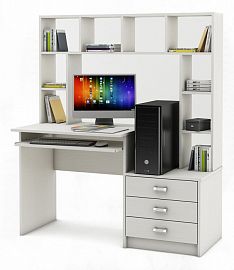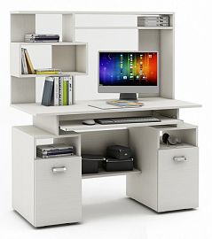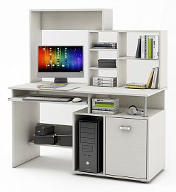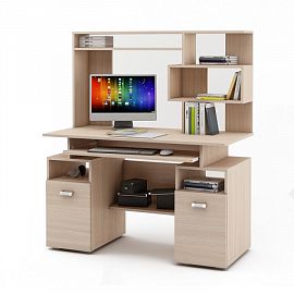Компоненты, входящие в комплект: выдвижная панель под клавиатуру, надстройка: 2 дверцы, 5 полок, тумбочка: 1 дверца, 1 полка, 2 полки.
