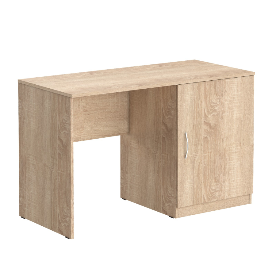 Универсальный стол с тумбой KANN подойдет для использования в гостинице или дома. Размеры - 1200х550х750 мм, тип - правосторонний, цвет – Дуб Сонома Светлый. Стол оснащен надежной столешницей из ЛДСП 16 мм. Тумба предназначена для размещения холодильника. На дверце установлена стильная металлическая ручка. Конструкция оснащена прочными силовыми креплениями – эксцентриковыми стяжками. Все торцы основных элементов надежно защищены кромкой ПВХ – 2 мм. Регулируемые по высоте опоры обеспечат столу устойчивость на неровном полу.
