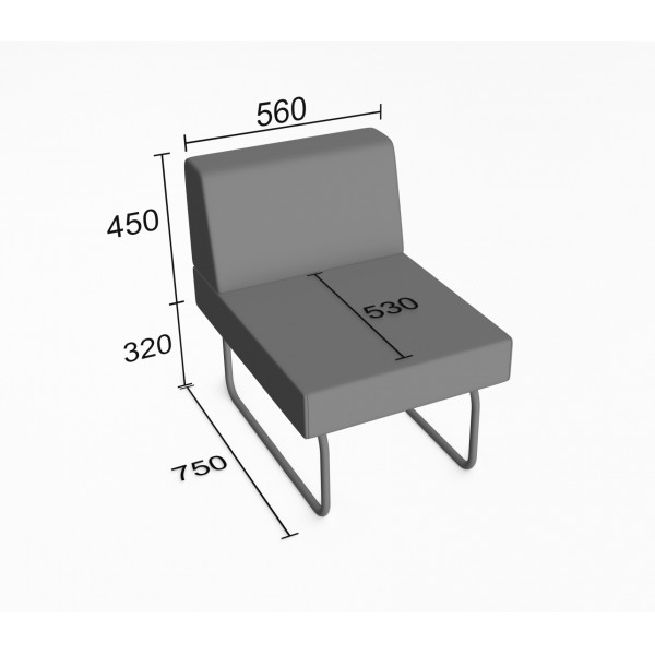 Каркас: калиброванный брус 30х40 мм массив хвойных пород древесины 8-12% влажности, ДСП 16 мм, ДВП 3,2 мм влагостойкий, картон прессованный 1,75 мм скрепляются при помощи каркасных пневмописталетов (созданных для интенсивных производств с качественно подготовленным воздухом), а так же каркасной скобой 50 мм с клеем (с высокими крепёжными свойствами). Это позволяет надежно скрепить дерево, фанеру, ДВП, ДСП, ЛДСП и обеспечивает практически неразборность соединений и отсутствие рекламаций.Чехол: изготавливается по проработанным, выверенным по дизайну лекалам. Во избежание отклонений или брака чехлов лекала создаются из специальных высокопрочных материалов. Пошив чехлов осуществляется колонковыми одно- и двух игольными швейными машинками с тройным продвижением с равномерной амплитудой подачи материалов. Так обеспечивается получение идеально ровной по всей длине шва строчки. Дополнительно, благодаря компенсирующей лапке со встроенным направителем середины шва, достигается стабильная натяжка ниток и равномерное расстояние между строчками.Сиденье: наполнитель — пенополиуритан 20 мм, 30 мм, 50 мм ST2536 плотностью 25 кг/м³, жесткость 3,6 кПа, техническая ткань — спанбонд 100 г/м² (обивка дна).Спинка: наполнитель — пенополиуритан 10 мм и 30 мм ST2536 плотностью 25 кг/м³, жесткость 3,6 кПа.Подлокотники: наполнитель — пенополиуритан10 мм, 20 мм ST2536 плотностью 25 кг/м³, жесткость 3,6 кПа.Опоры: цвет — черный или серый, материал — металлическая труба диаметром 20 мм, высота — 310 мм, возможность регулировки — отсутствует, тип крепления — накладная площадка, монтаж — не требуется.Упаковка: многослойная защита: спанбонд 17, пленекс, двухслойный картон, полиэтиленовая пленка, фирменный одноразовый скотч, исключающий несанкционированную переупаковку.Допустимая нагрузка: до 120 кг на одно посадочное место.