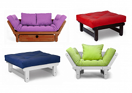 Обивка: велюр, микровельвет, рогожка, экокожа. Все ткани обладают высокой степенью прочности, не скатываются и не протираются. Велюр и микровельвет и приятны на ощупь. Они «дышат», пропуская через себя воздух. Рогожка придает строгость и натуральность внешнего вида. Экокожа не впитывает воду, проста в уходе.