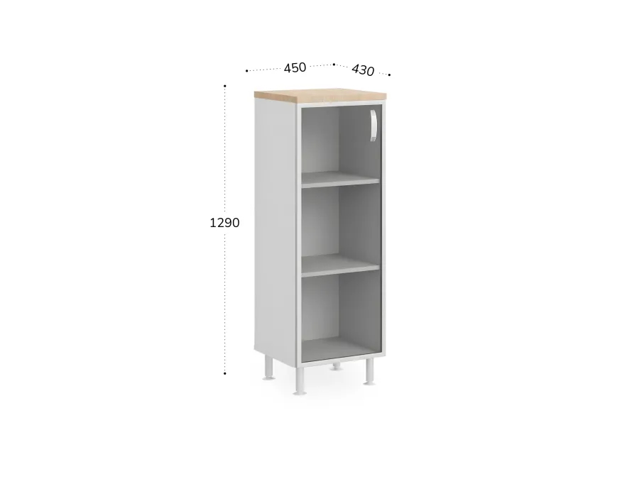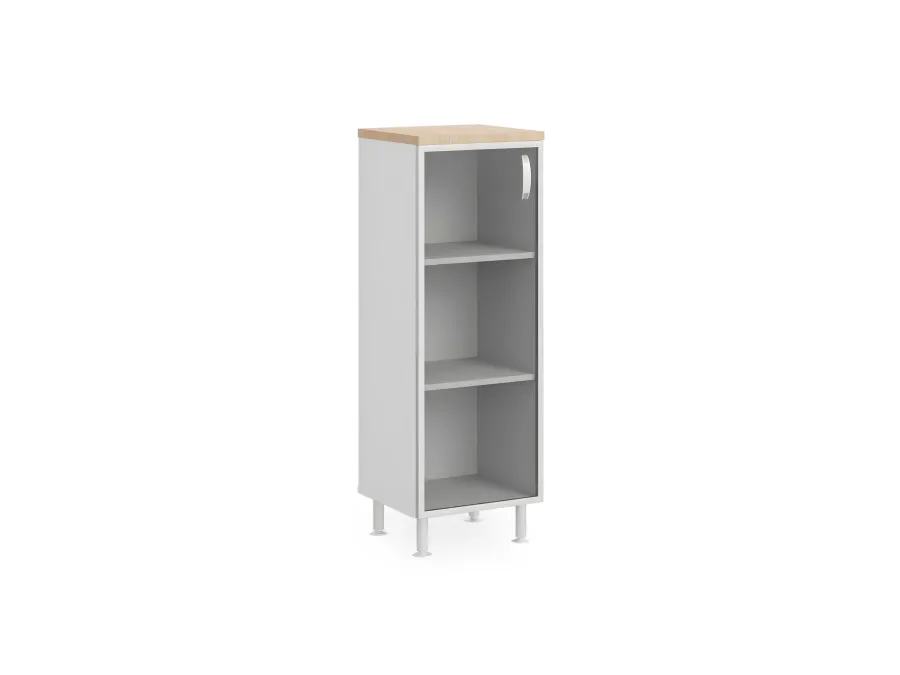 БЕРЛИН / BERLIN Стеллаж закрытый витрина стекло в раме левый 450х430х1290 Акация/Белый