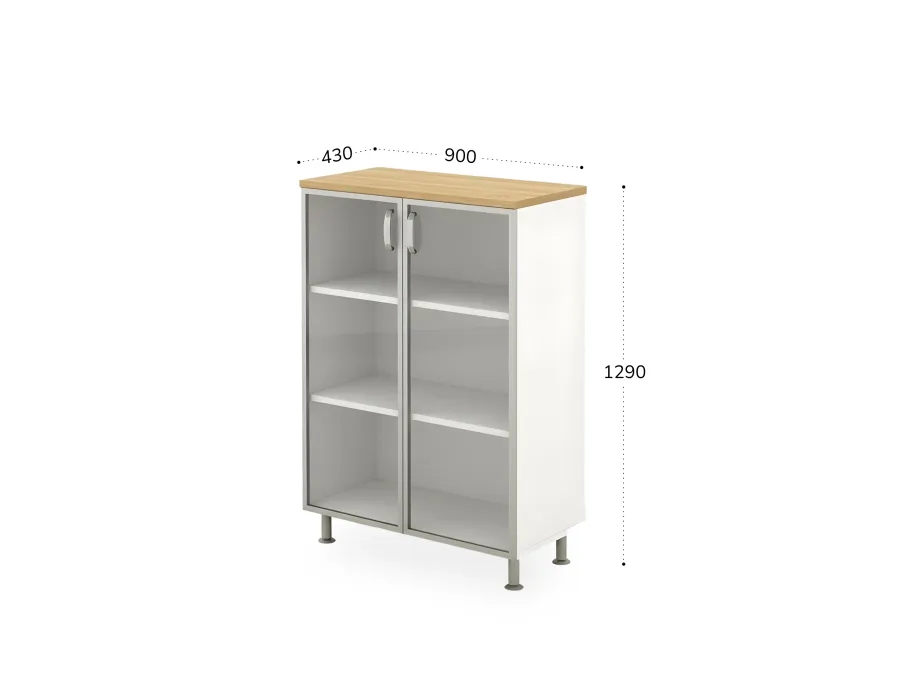 БЕРЛИН / BERLIN Стеллаж закрытый витрина стекло в раме 900х430х1290 Акация/Белый