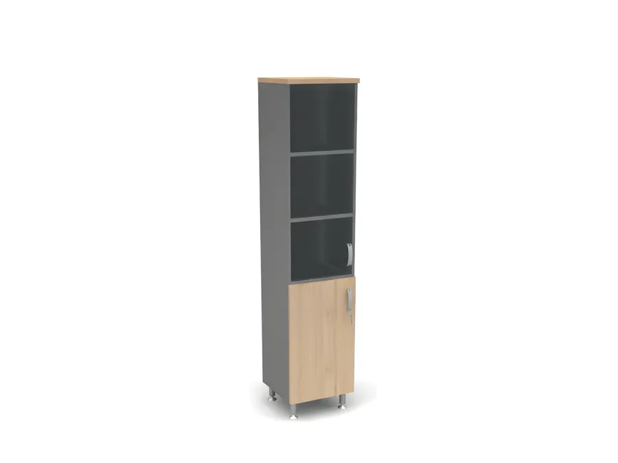 БЕРЛИН / BERLIN Шкаф закрытый комбинированный, стекло 5 уровней левый 450х430х2080 Акация/Серый