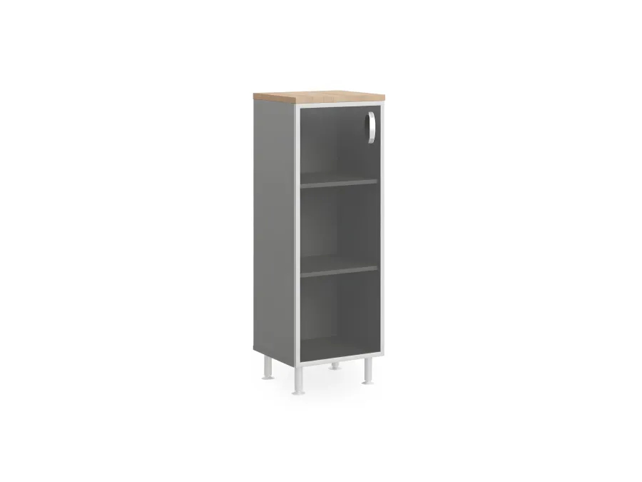 БЕРЛИН / BERLIN Стеллаж закрытый витрина стекло в раме левый 450х430х1290 Акация/Серый