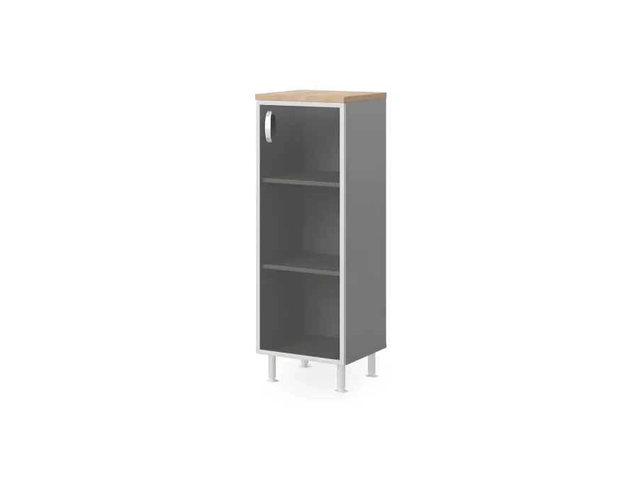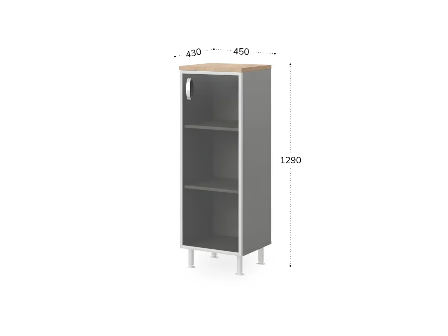 БЕРЛИН / BERLIN Стеллаж закрытый витрина стекло в раме правый 450х430х1290 Акация/Серый