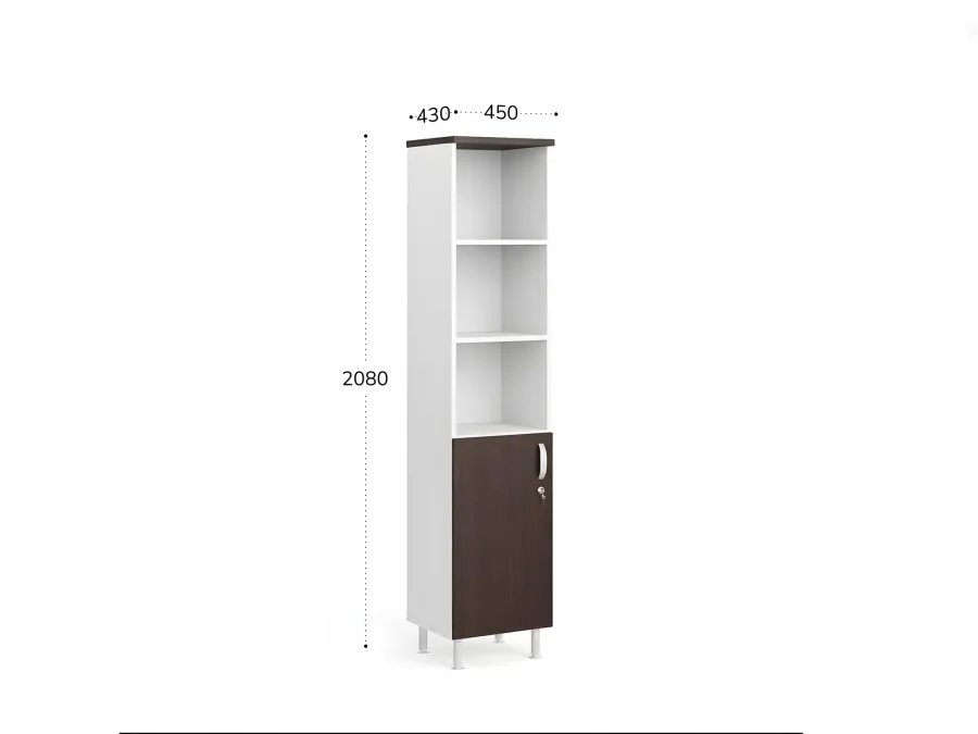 БЕРЛИН / BERLIN Шкаф полуоткрытый 5 уровней левый 450х430х2080 Венге/Белый