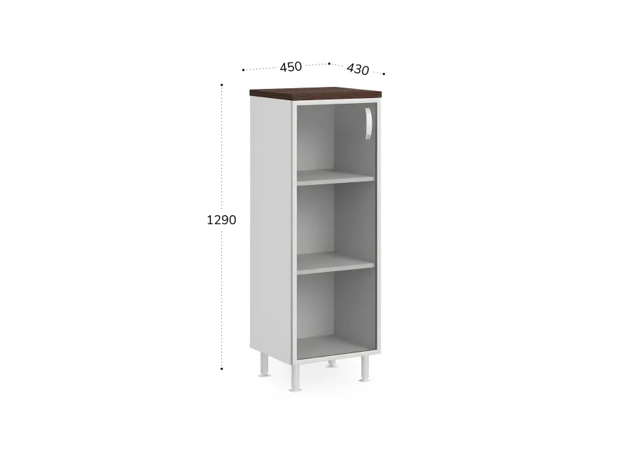 БЕРЛИН / BERLIN Стеллаж закрытый витрина стекло в раме левый 450х430х1290 Венге/Белый