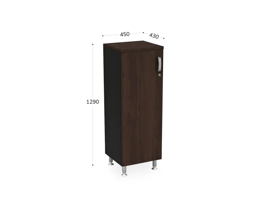 БЕРЛИН / BERLIN Шкаф закрытый узкий 3 уровня левый 450х430х1290 Венге/Черный