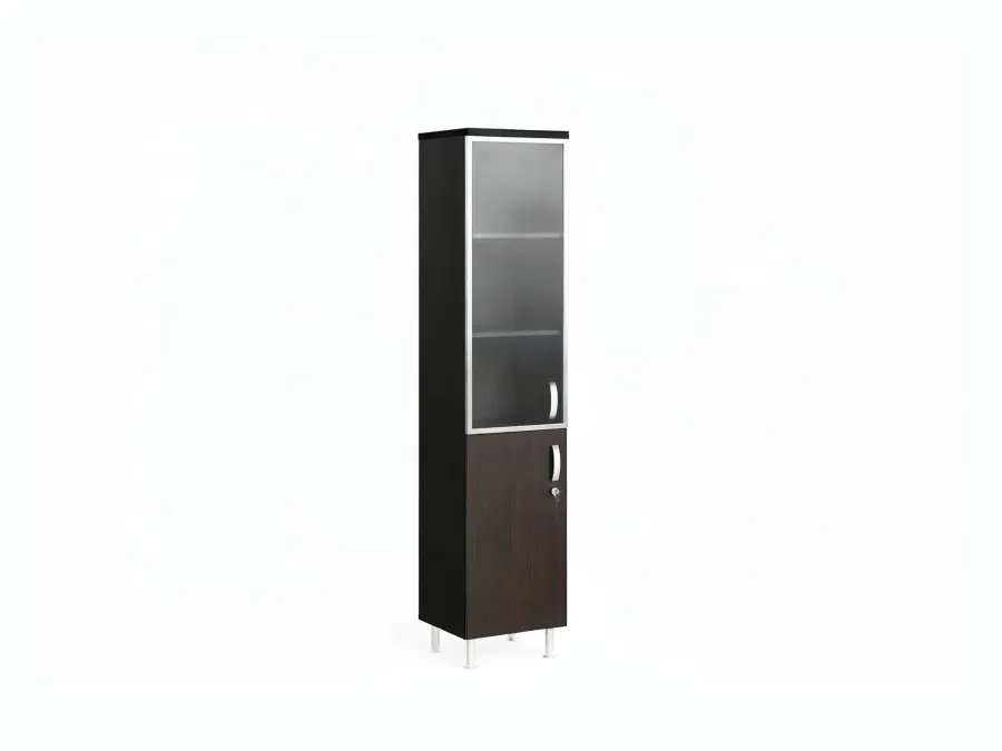 БЕРЛИН / BERLIN Шкаф закрытый комбинированный, стекло в раме 5 уровней левый 450х430х2080 Венге/Черный