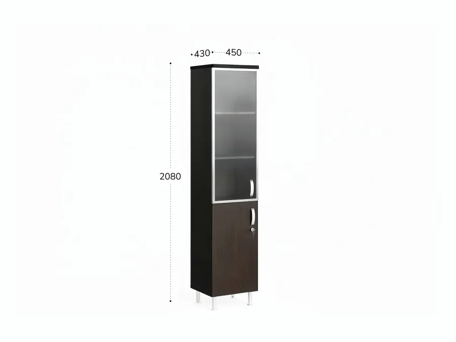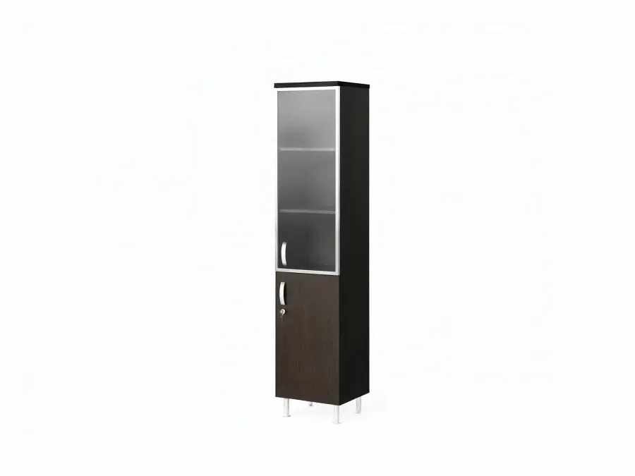 БЕРЛИН / BERLIN Шкаф комби-ый, стекло в раме 5 уровней правый 450х430х2080 Венге/Черный