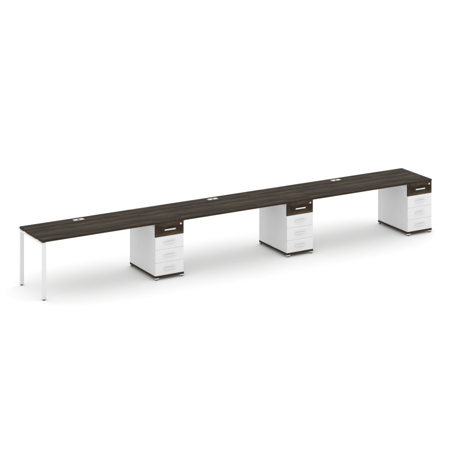 Concept Рабочая станция 3 места с 3 опорными тумбами CN.ORS-444 W Дуб Мали/Белый Бриллиант/Металл Белый 6000*720*750