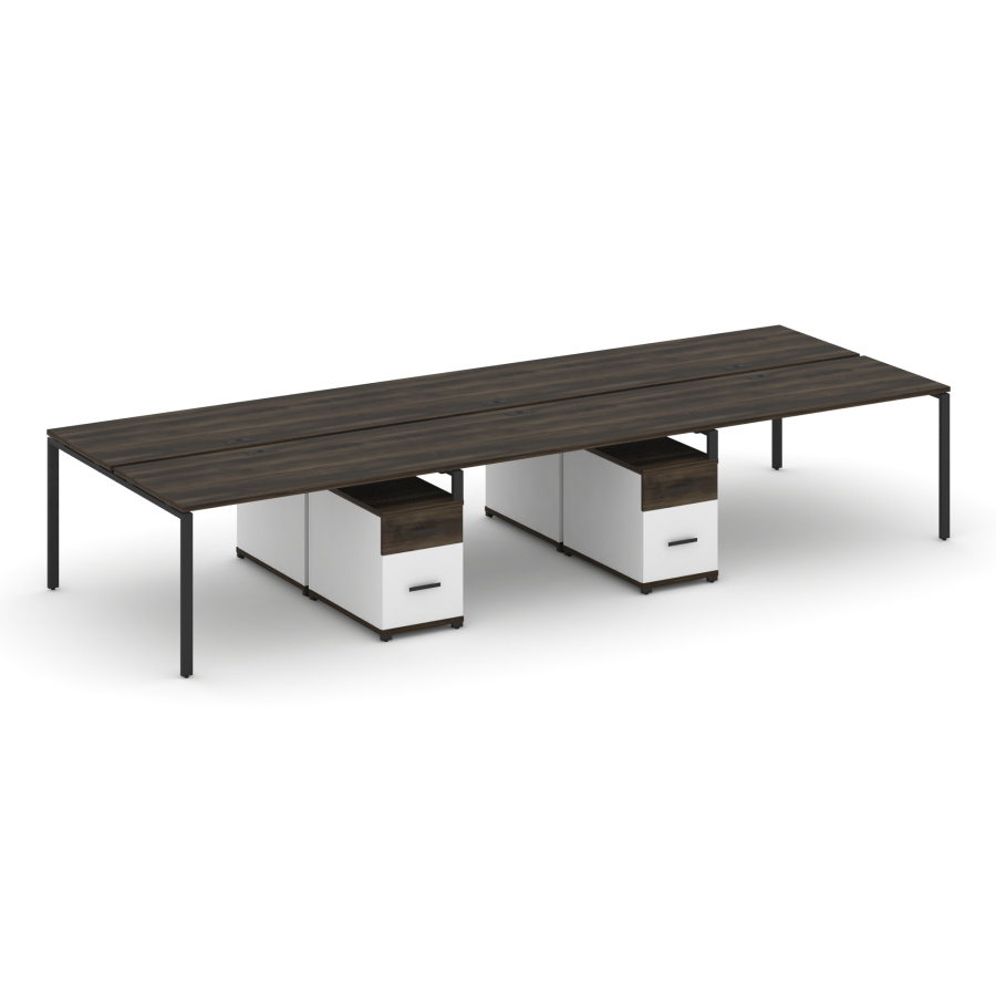 Concept Рабочая станция 6 мест с 2 двухсторонними опорными тумбами CN.DRS-347 W Дуб Мали/Белый Бриллиант/Металл Черный 4140*1480*750