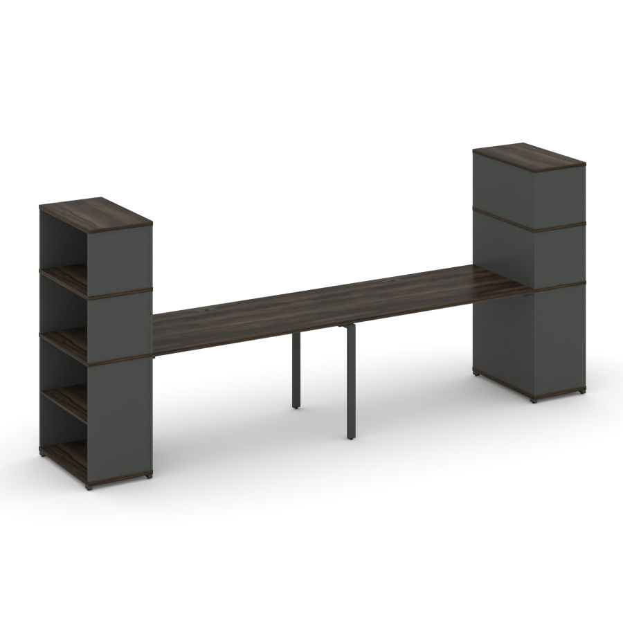 Concept Рабочая станция с опорными стеллажами с надставкой выс. CN.ORS-215 Дуб Мали/Антрацит/Металл Антрацит 3600*720*1530