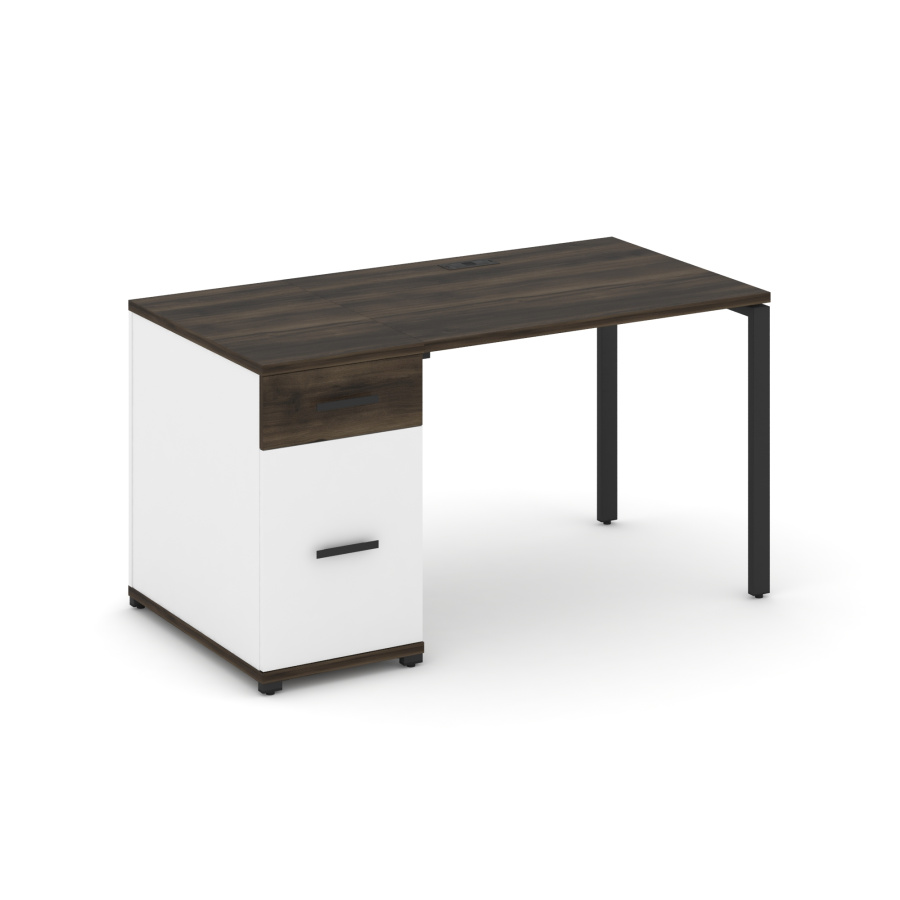Concept Стол рабочий с 1 опорной тумбой CN.SP-405 W Дуб Мали/Белый Бриллиант/Металл Черный 1400*720*750