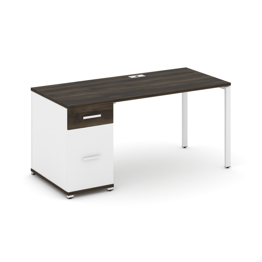 Concept Стол рабочий с 1 опорной тумбой CN.SP-406 W Дуб Мали/Белый Бриллиант/Металл Белый 1600*720*750