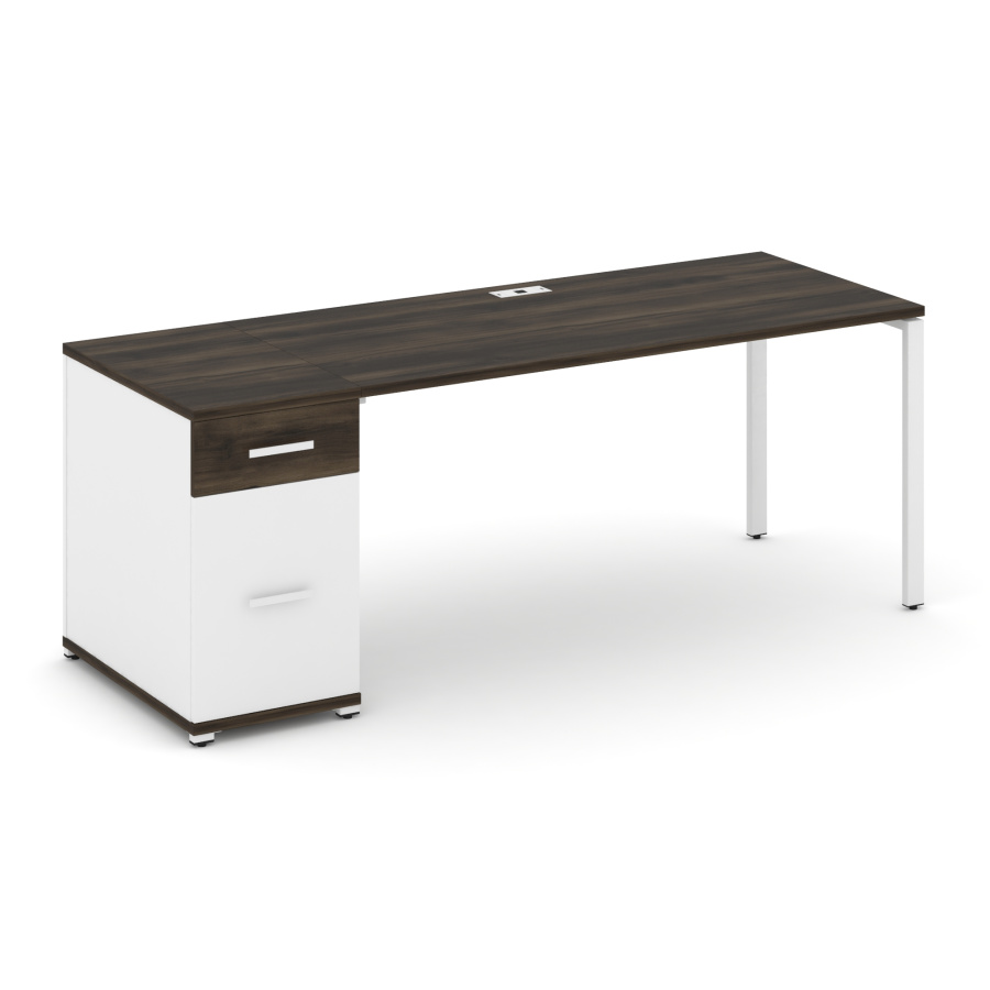 Concept Стол рабочий с 1 опорной тумбой CN.SP-408 W Дуб Мали/Белый Бриллиант/Металл Белый 2000*720*750