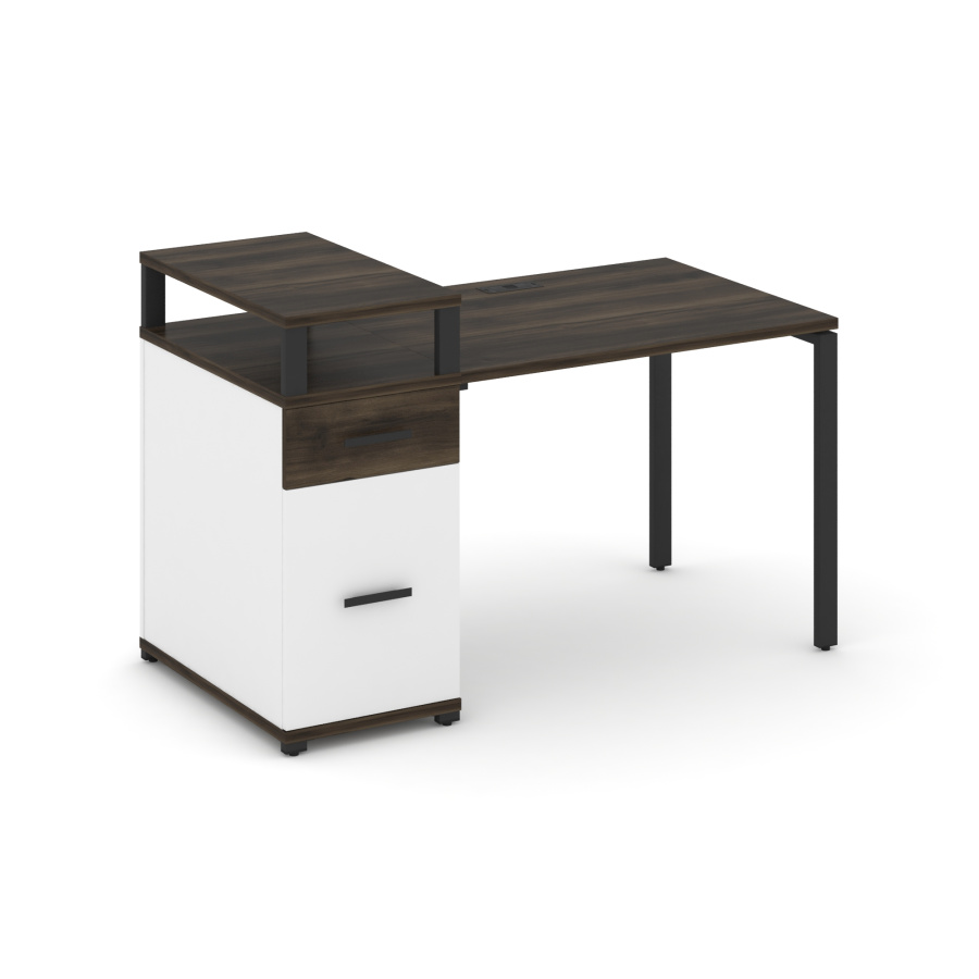 Concept Стол рабочий с 1 опорной тумбой CN.SP-413 W Дуб Мали/Белый Бриллиант/Металл Черный 1400*720*917