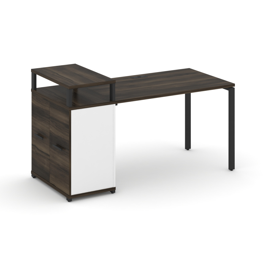 Concept Стол рабочий с опорным распаш. шкафом с верх. горизонтом CN.SP-222 W Дуб Мали/Белый Бриллиант/Металл Черный 1600*720*917