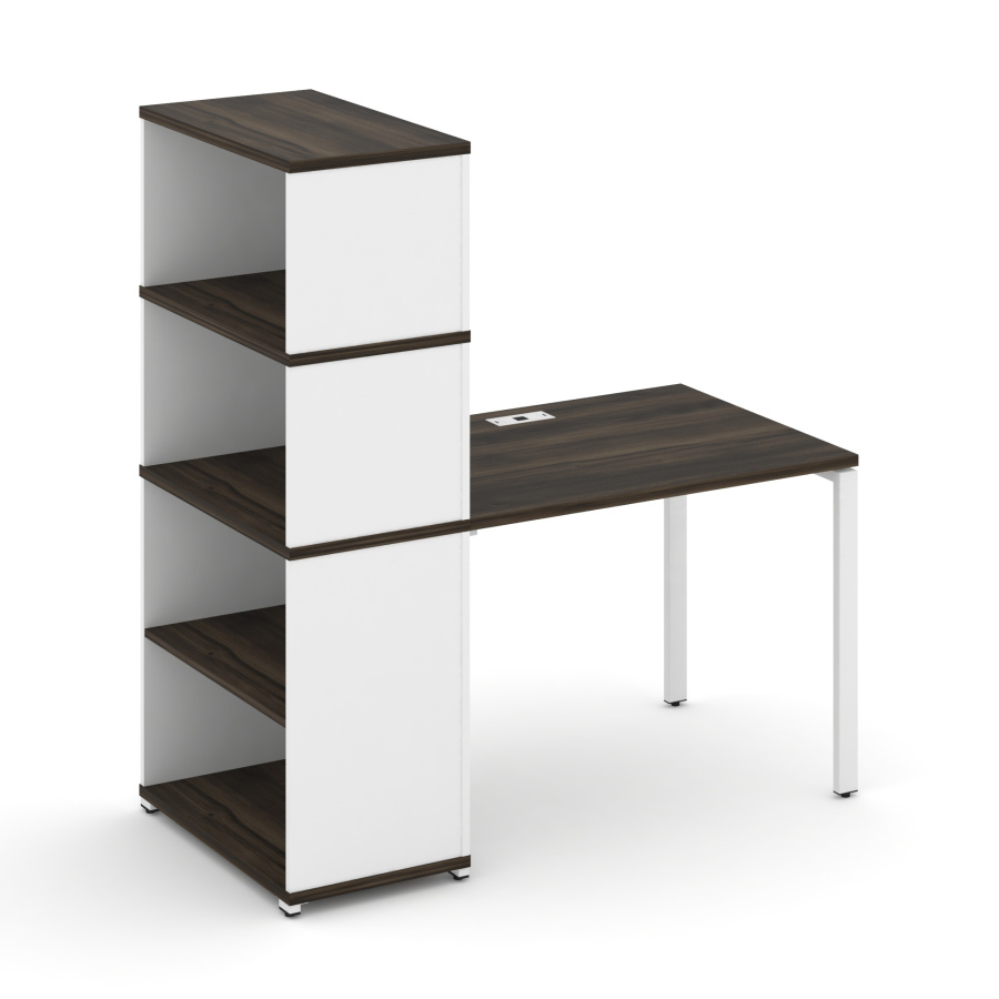 Concept Стол рабочий с опорным стеллажом с надставкой выс. CN.SP-213 Дуб Мали/Белый Бриллиант/Металл Белый 1400*720*1530