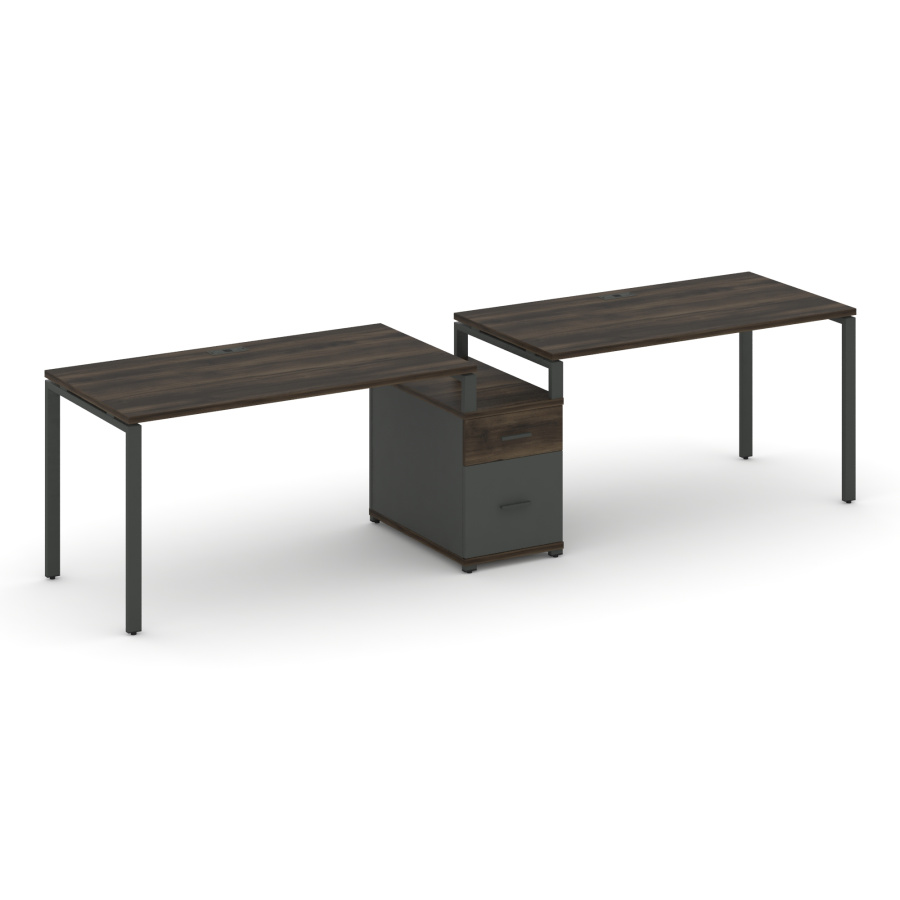 Concept Рабочая станция 2 места с 1 опорной тумбой CN.ORS-305 W Дуб Мали/Антрацит/Металл Антрацит 2272*720*750