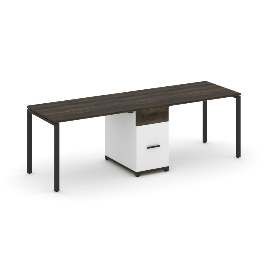 Concept Рабочая станция 2 места с 1 опорной тумбой CN.ORS-405 W Дуб Мали/Белый Бриллиант/Металл Черный 2380*720*750