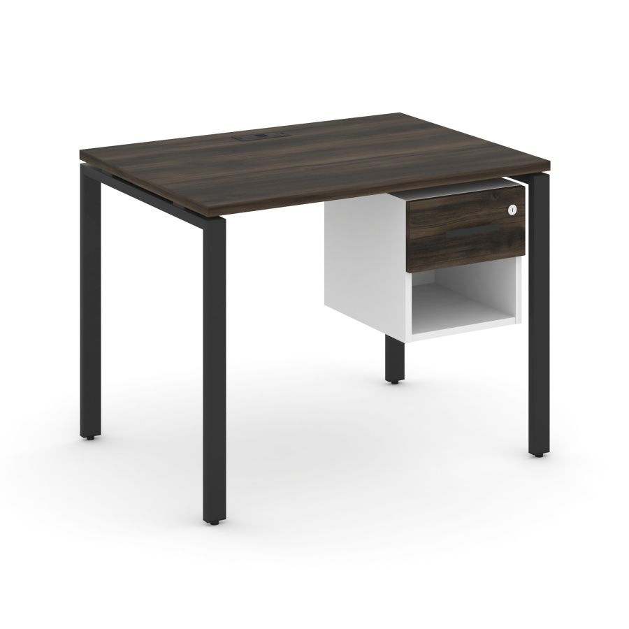 Concept Стол рабочий с подвесной тумбой 1 открытой нишей и одним ящ. CN.SP-117 W Дуб Мали/Белый Бриллиант/Металл Черный 980*720*750