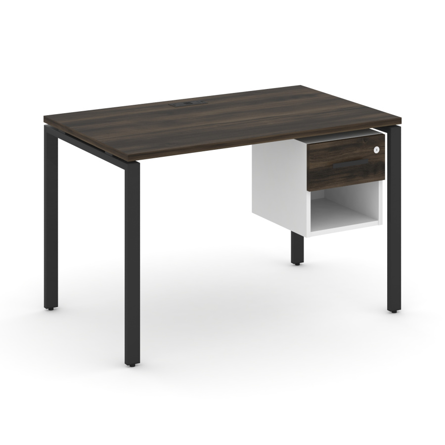 Concept Стол рабочий с подвесной тумбой 1 открытой нишей и одним ящ. CN.SP-118 W Дуб Мали/Белый Бриллиант/Металл Черный 1180*720*750