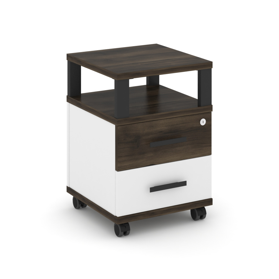 Concept Тумба мобильная 2 ящ. с надставкой CN.TUM-002 B Дуб Мали/Белый Бриллиант/Металл Черный 420*420*615