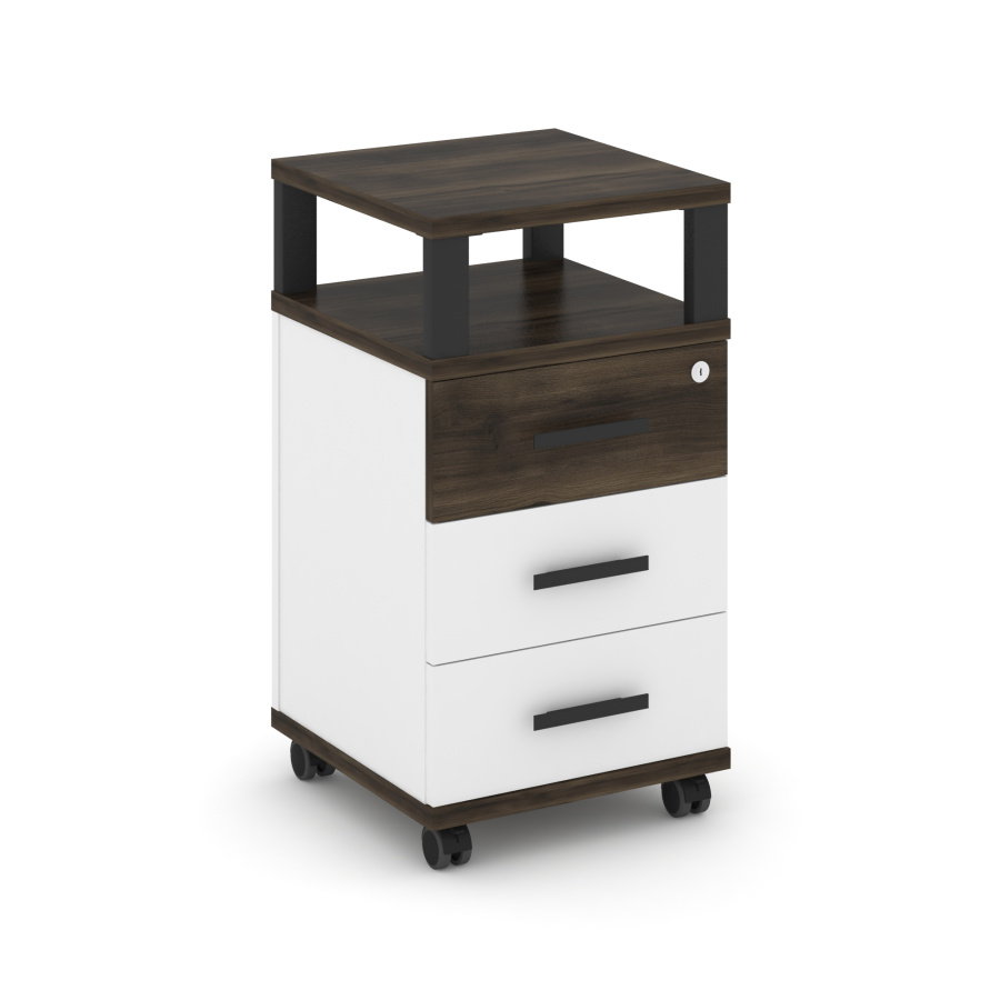 Concept Тумба мобильная 3 ящ. с надставкой CN.TUM-004 B Дуб Мали/Белый Бриллиант/Металл Черный 420*420*782