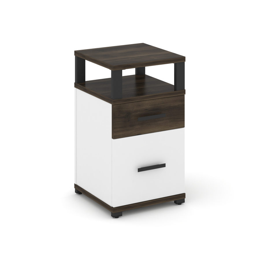 Concept Тумба приставная 1 ящ.+1 распаш. фасад с надставкой CN.TUP-006 W Дуб Мали/Белый Бриллиант/Металл Черный 420*420*750