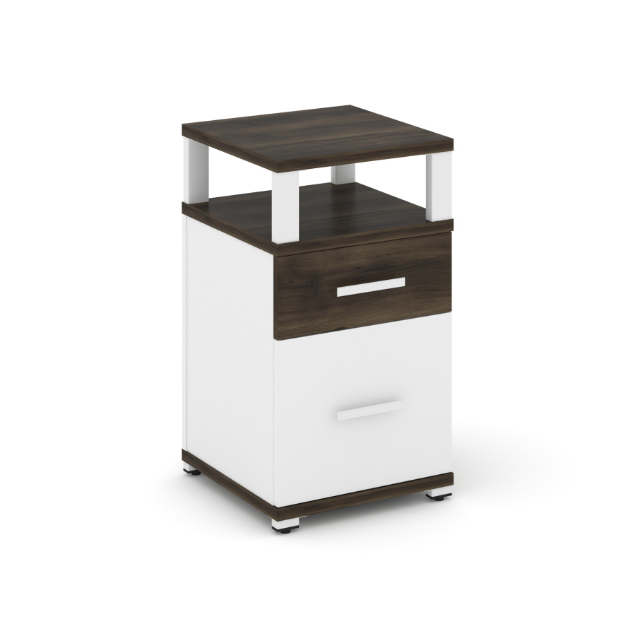 Concept Тумба приставная 1 ящ.+1 распаш. фасад с надставкой CN.TUP-006 W Дуб Мали/Белый Бриллиант/Металл Белый 420*420*750