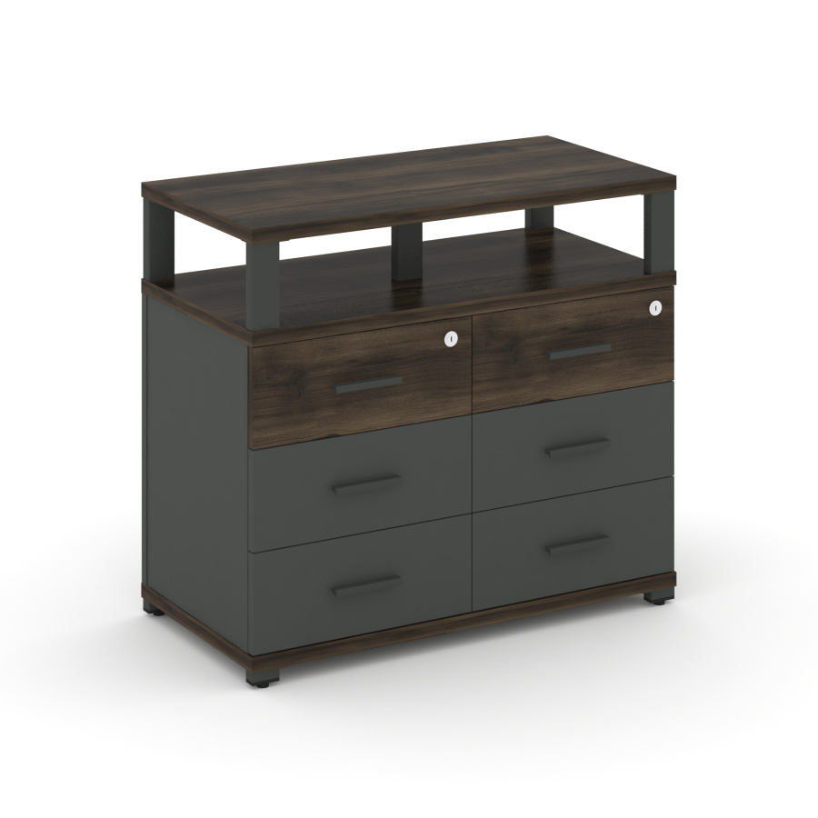 Concept Тумба приставная широкая 6 ящ. с надставкой широкой CN.TSP-009 A Дуб Мали/Антрацит/Металл Антрацит 836*420*750