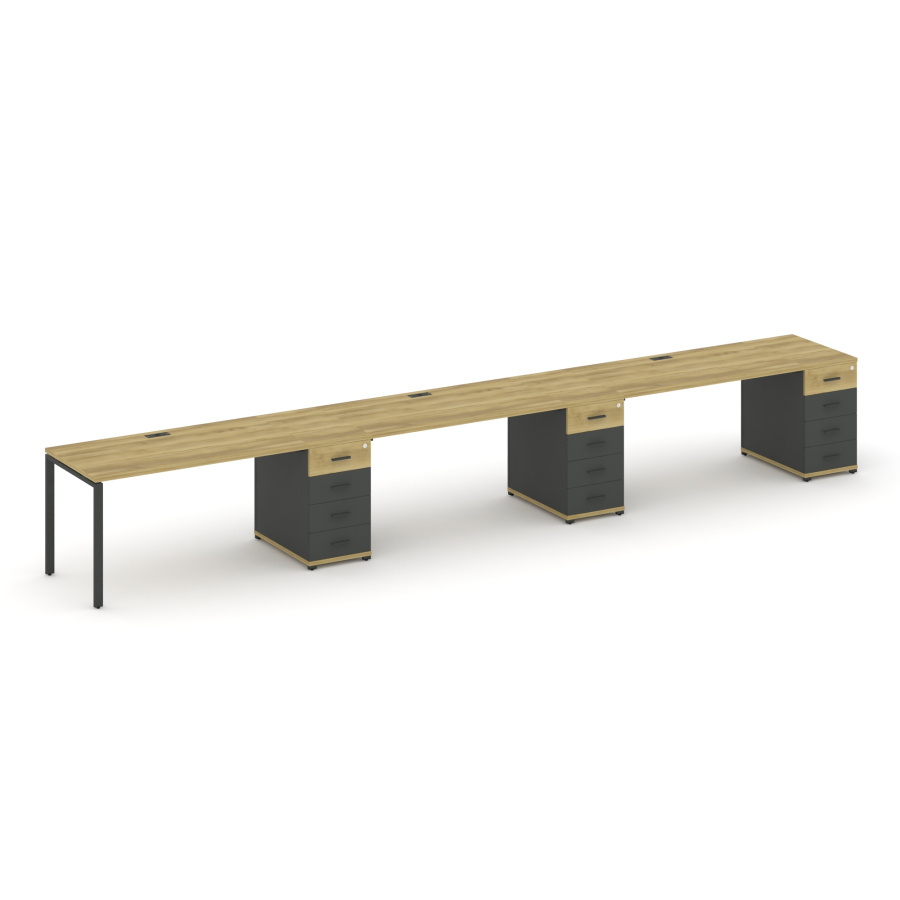 Concept Рабочая станция 3 места с 3 опорными тумбами CN.ORS-444 W Дуб Винченцо/Антрацит/Металл Антрацит 6000*720*750