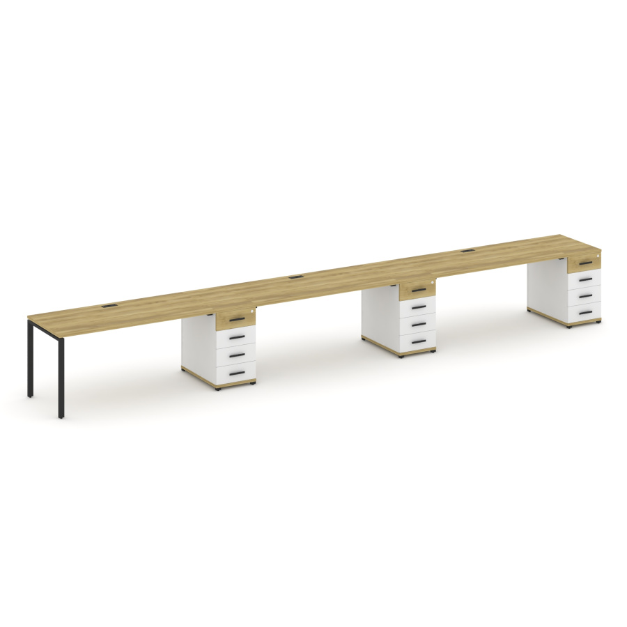 Concept Рабочая станция 3 места с 3 опорными тумбами CN.ORS-444 W Дуб Винченцо/Белый Бриллиант/Металл Черный 6000*720*750